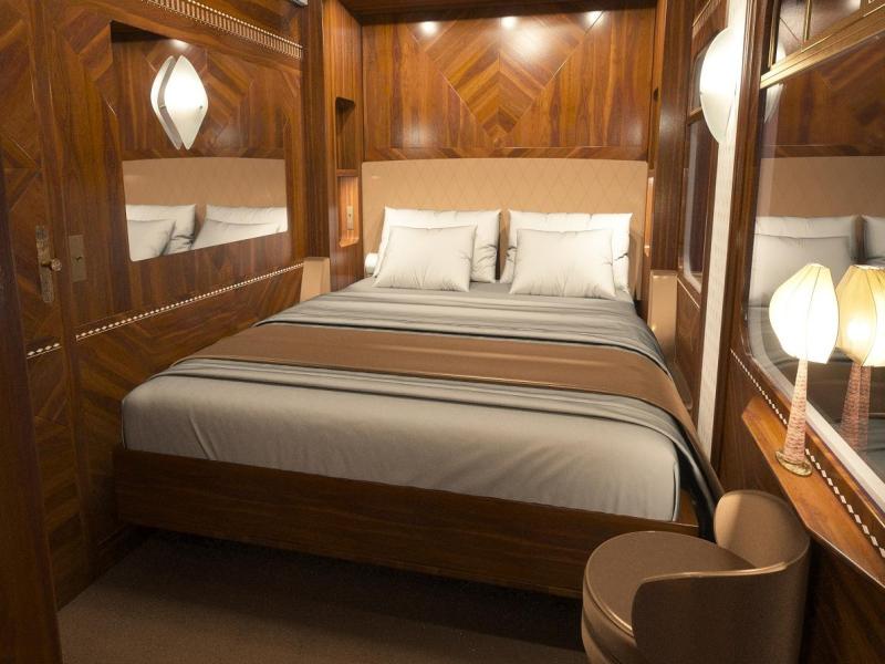 The train has 10 cabins (10m²) and 8 suites (15m²).