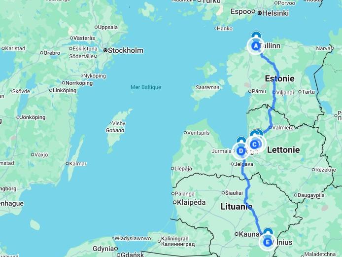 Riga (Lettonie) > Vilnius (Lituanie) : 04h10 / 348 km