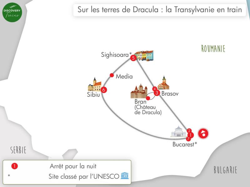 INDIVIDUEL (8 jours, sans nuit à bord) Explorez la Roumanie en train, de la capitale Bucarest en passant par les lieux mythiques de la légende de Dracula. Partez à la découverte de ce pays méconnu.