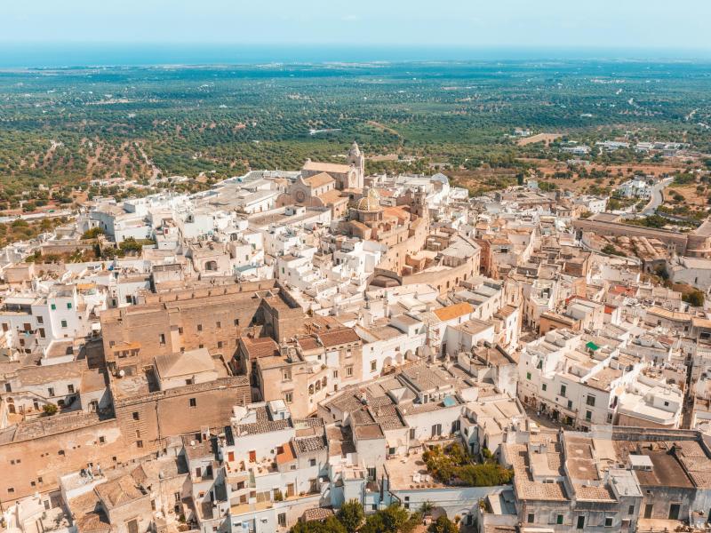 Avec ses maisons blanchies à la chaux qui s’étendent sur la colline, Ostuni est un spectacle à elle seule. Promenez-vous dans le dédale de ses ruelles pavées, découvrez ses églises et admirez le panorama exceptionnel sur les oliviers et la mer Adriatique au loin. C’est une véritable perle du sud de l’Italie.